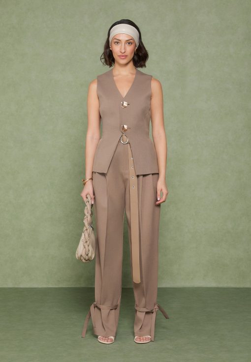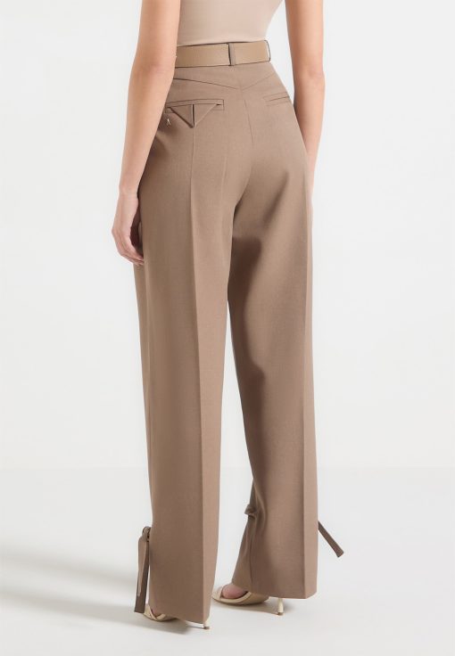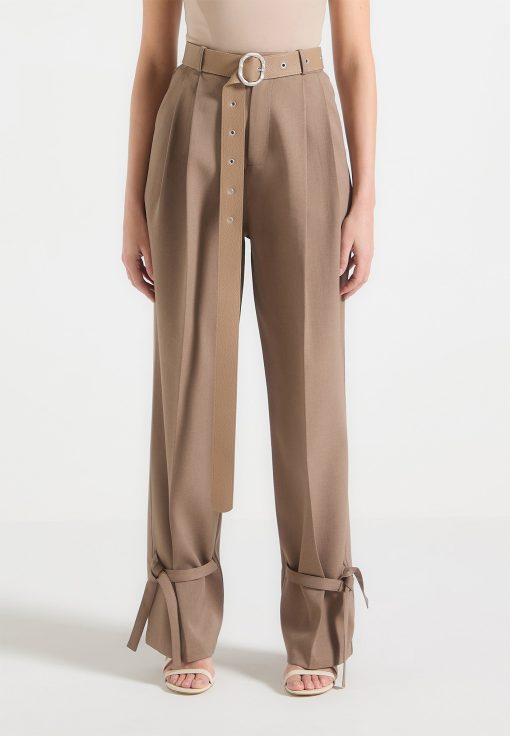 Manière De Voir Women’s Suzanne – Tailored Trousers With Oversized Belt And Ankle Ties – Taupe | Taupe