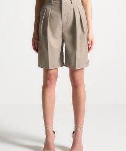 Expertly crafted with pleat detailing and a high-waisted design, our Tailored City Shorts are the perfect addition to any professional wardrobe. Elevate your style and stay comfortable all day with these sleek and sophisticated shorts.